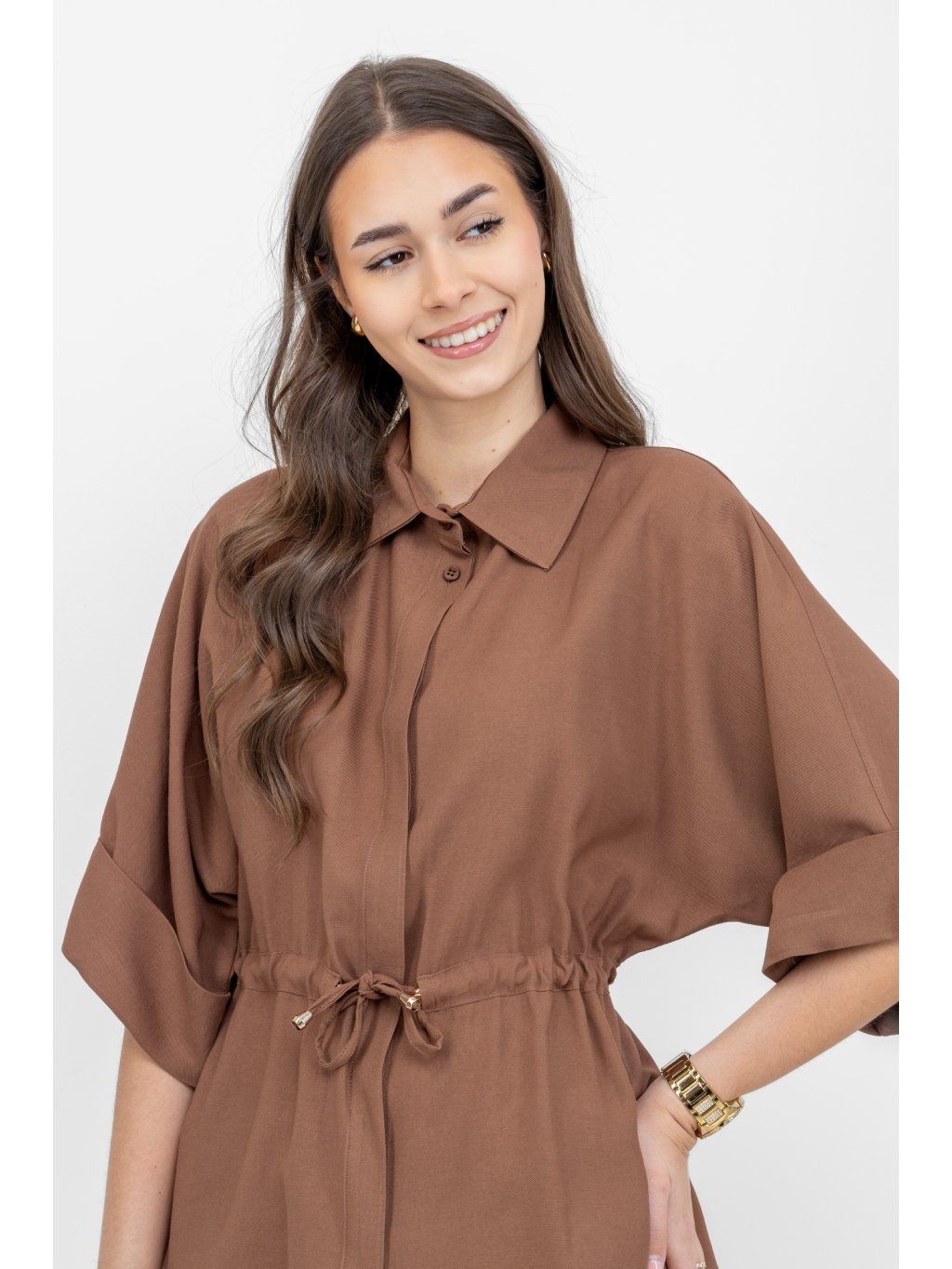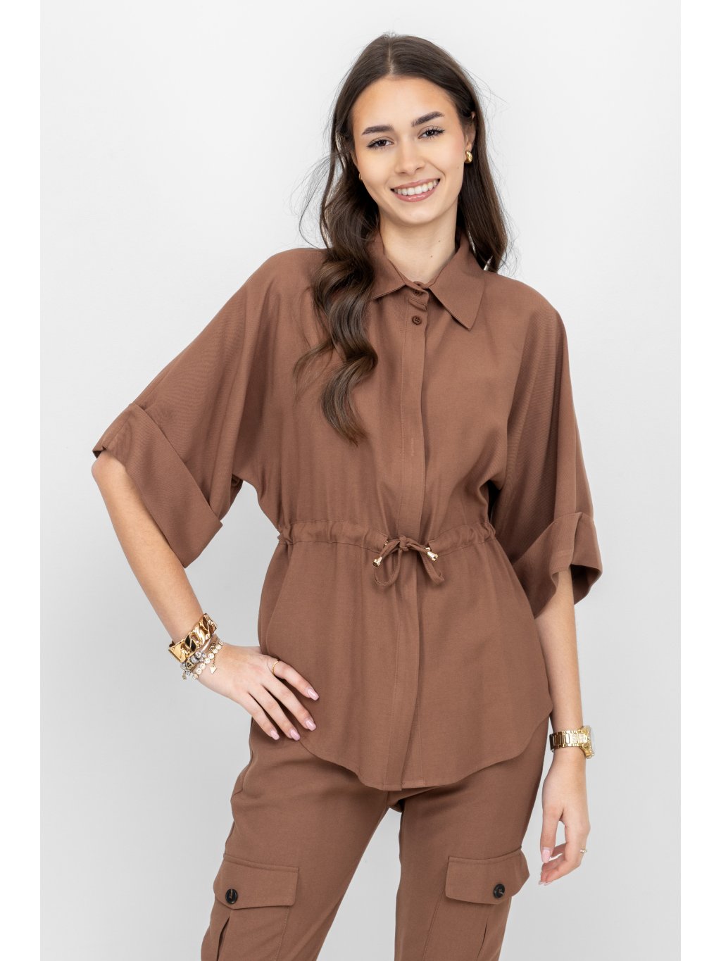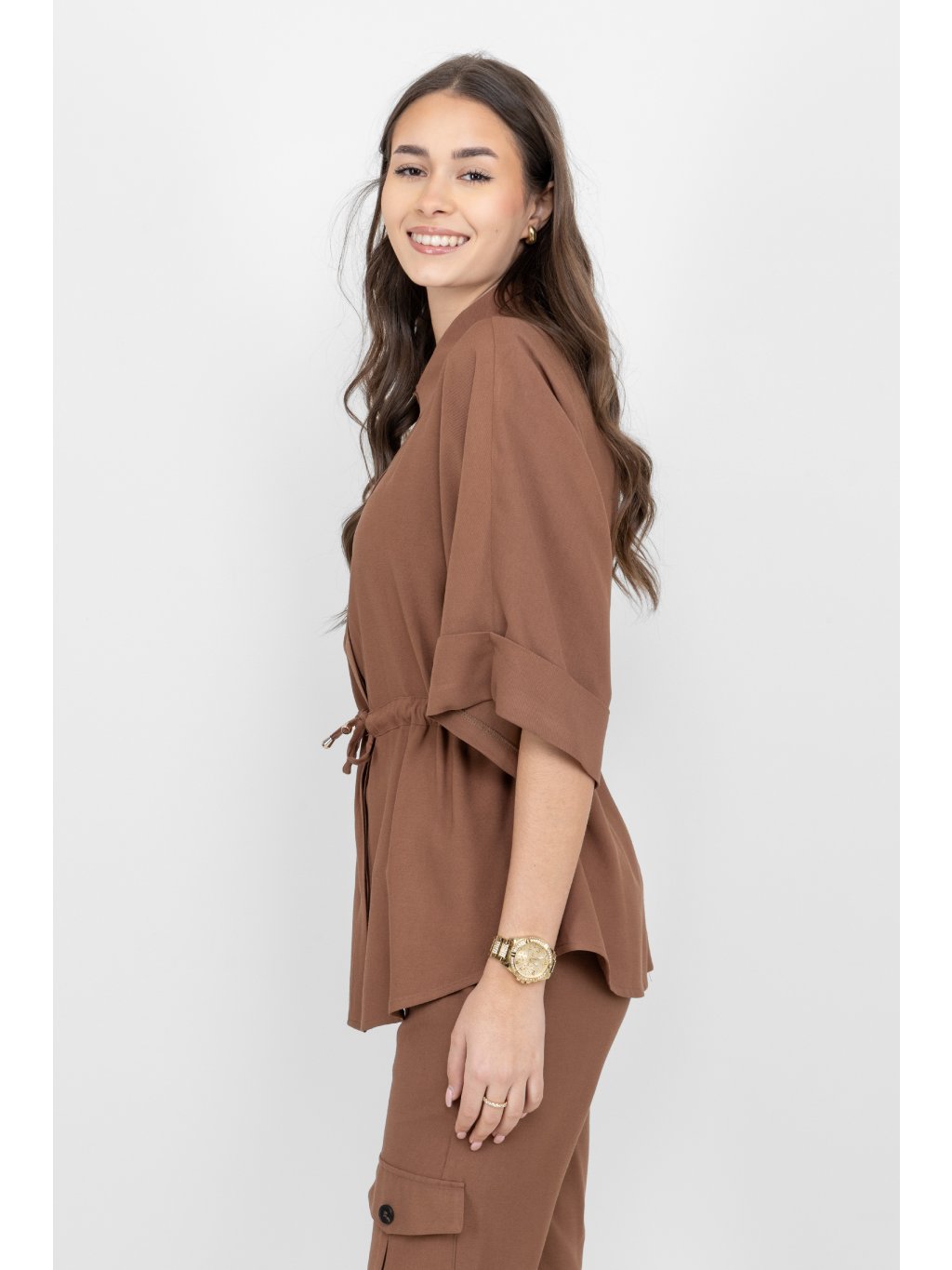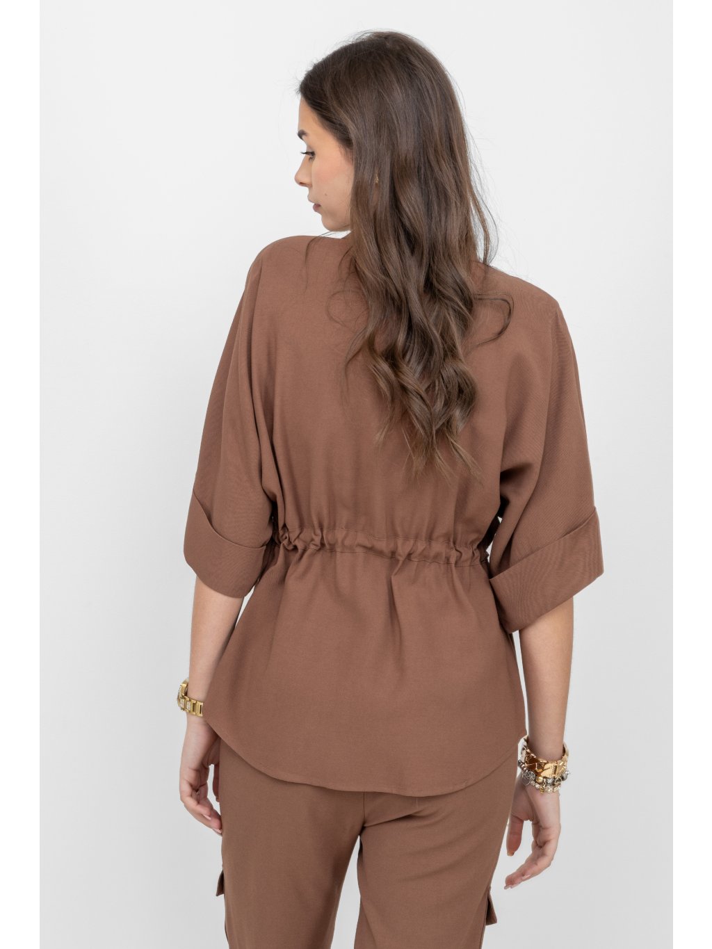 Civico halenka se stahováním 3/4 rukáv hnědá