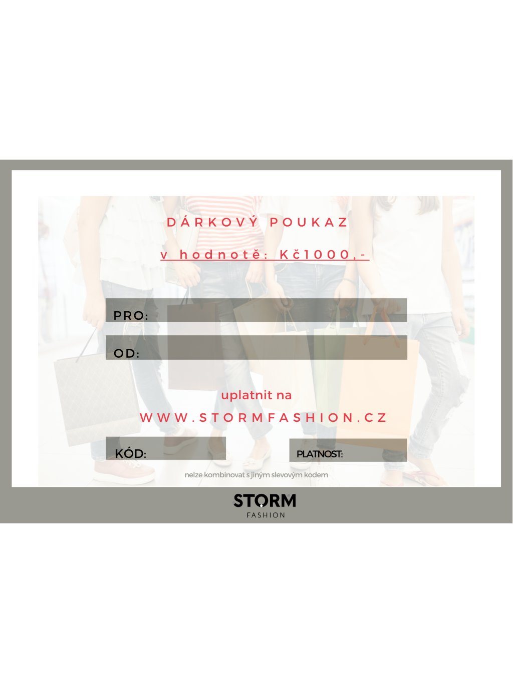 Dárkový poukaz k nákupu na stormfashion.cz a našich kamenných prodejnách. Vyberte si poukaz v částce, za kterou se chcete plácnout přes kapsu a my vám jej doručíme tak, abyste jej mohli ihned darovat ;)