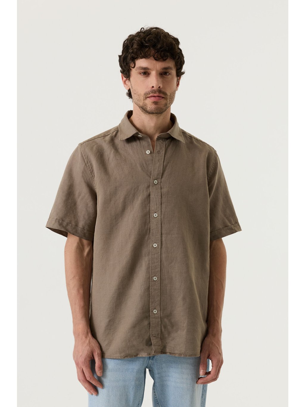 - pánská lněná košile hnědé barvy