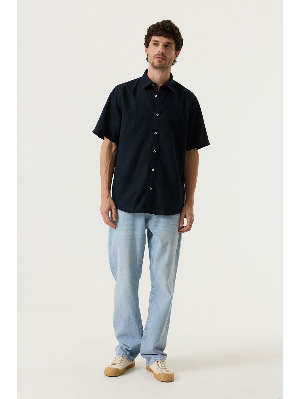 - pánská lněná košile tmavě modré barvy