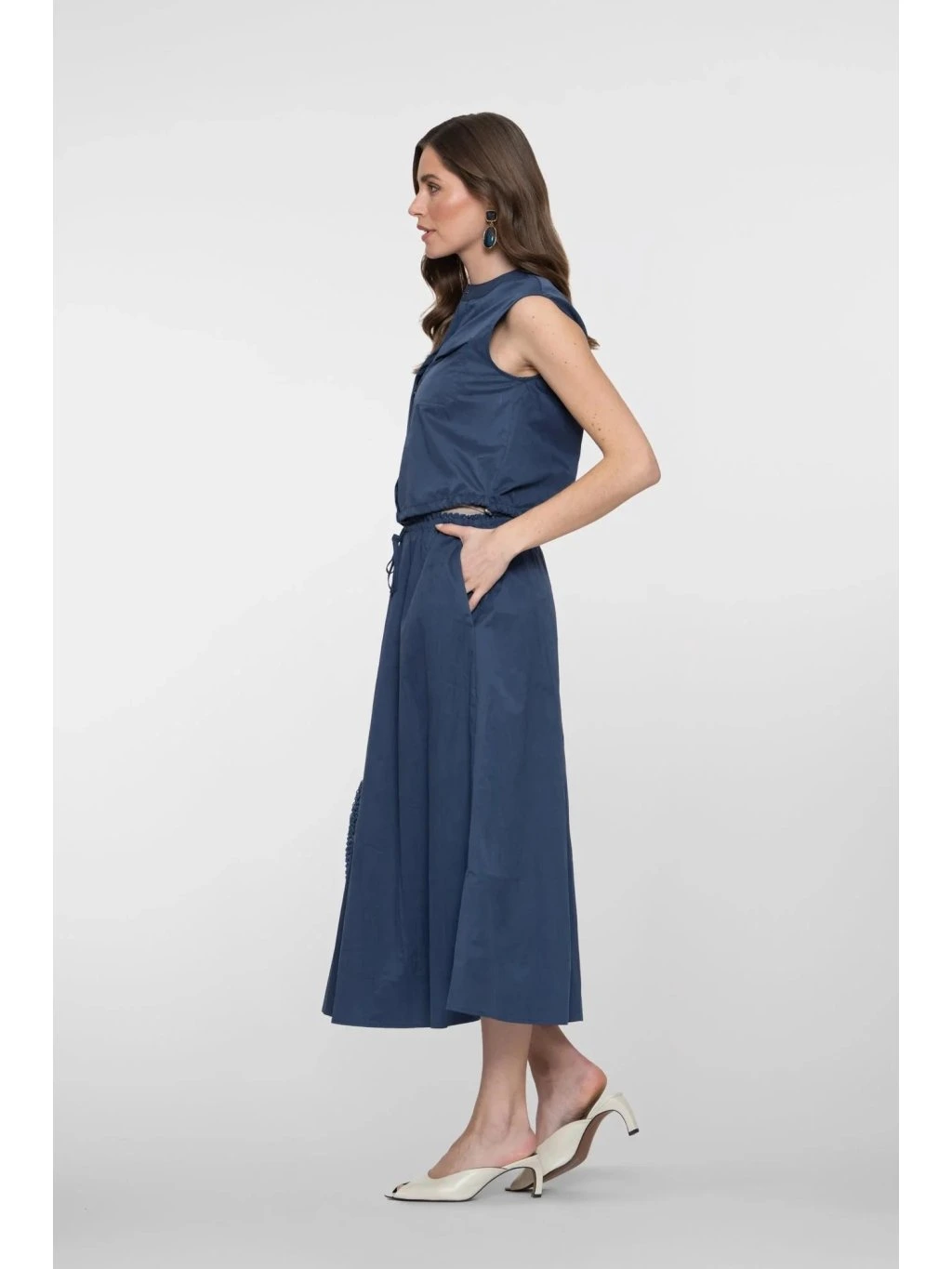 Geisha áčková midi sukně s kapsami modrá