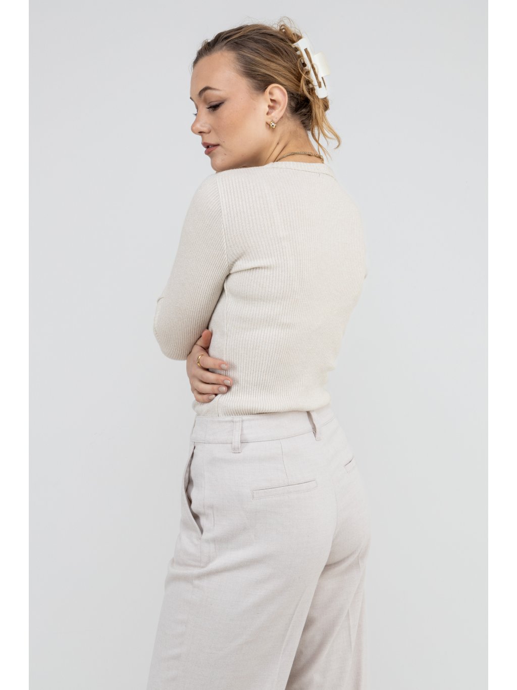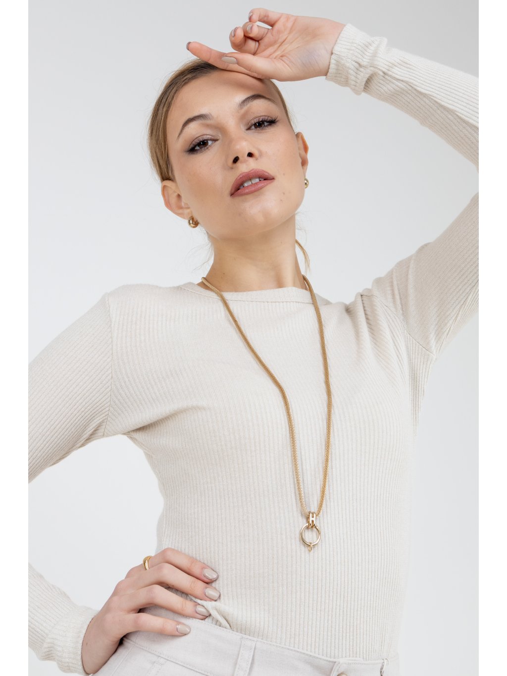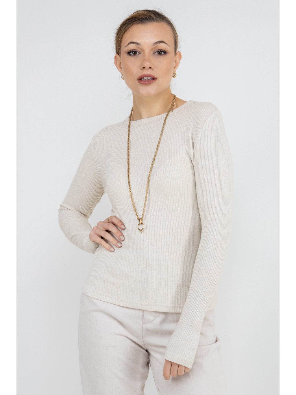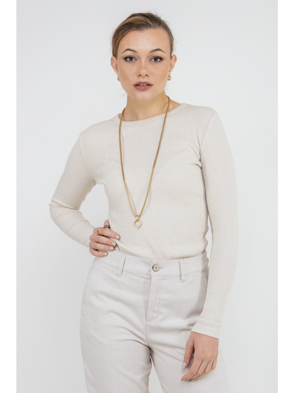 Greenpoint dámské triko se třpytkami dlouhý rukáv smetanové