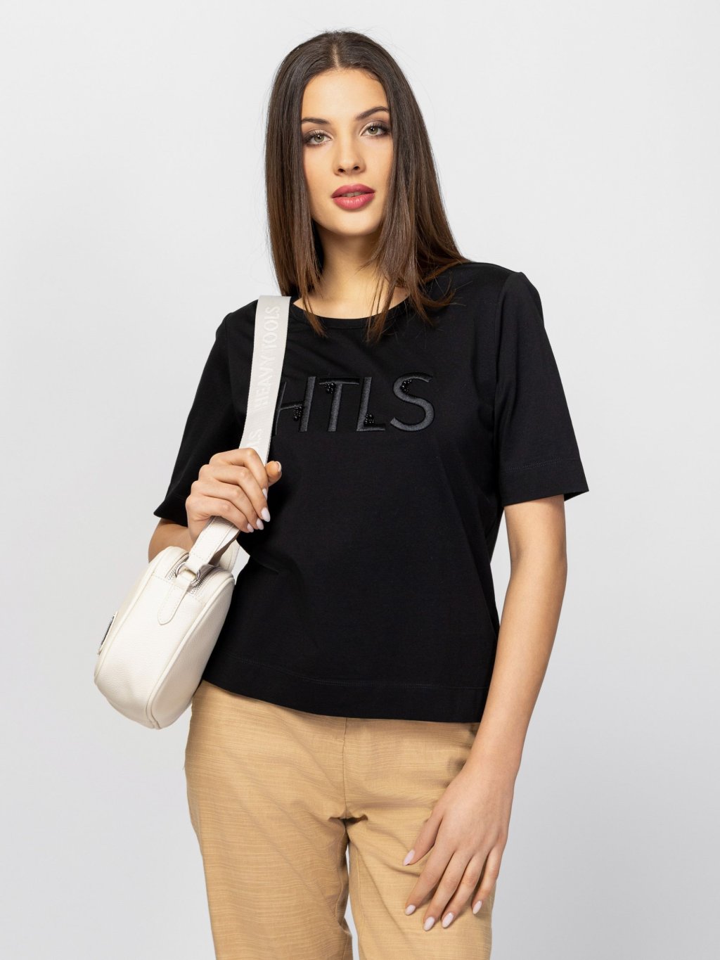 Heavy Tools bavlněné triko s vyšívanou aplikací Marissa černé
