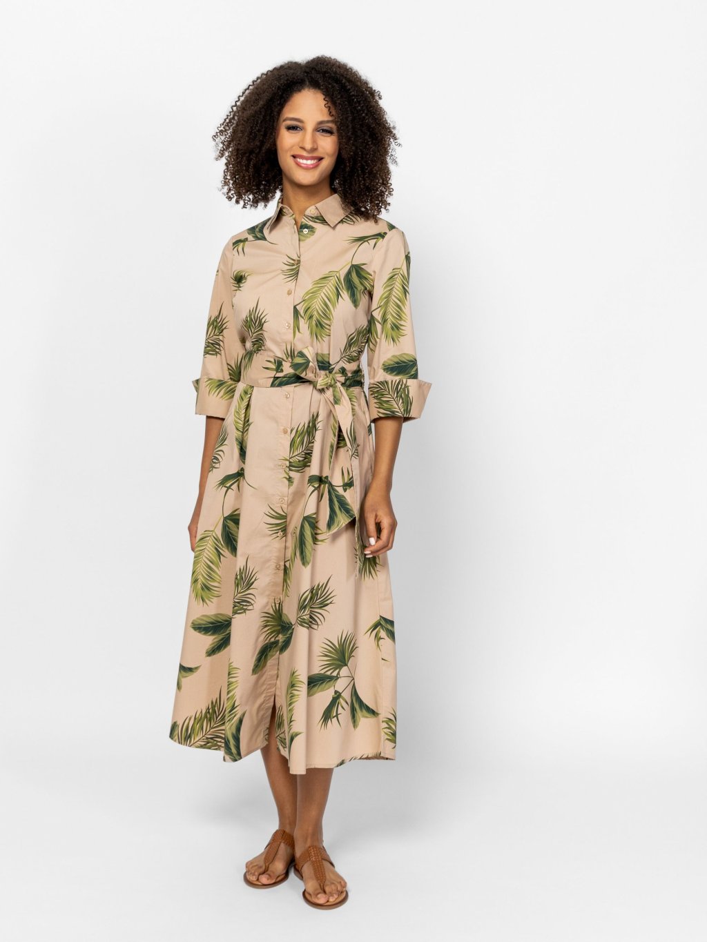 Heavy Tools plátěné midi šaty Violetta béžovo/zelené