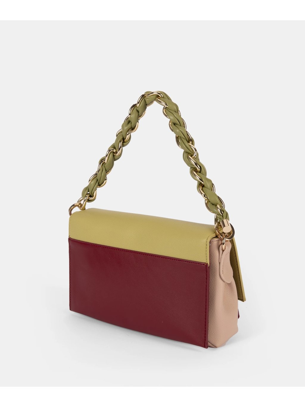 - dámská kabelka v kombinaci limetkové, vínové a béžové barvy