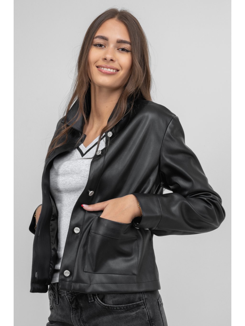 - dámské koženkové sako v černé barvě