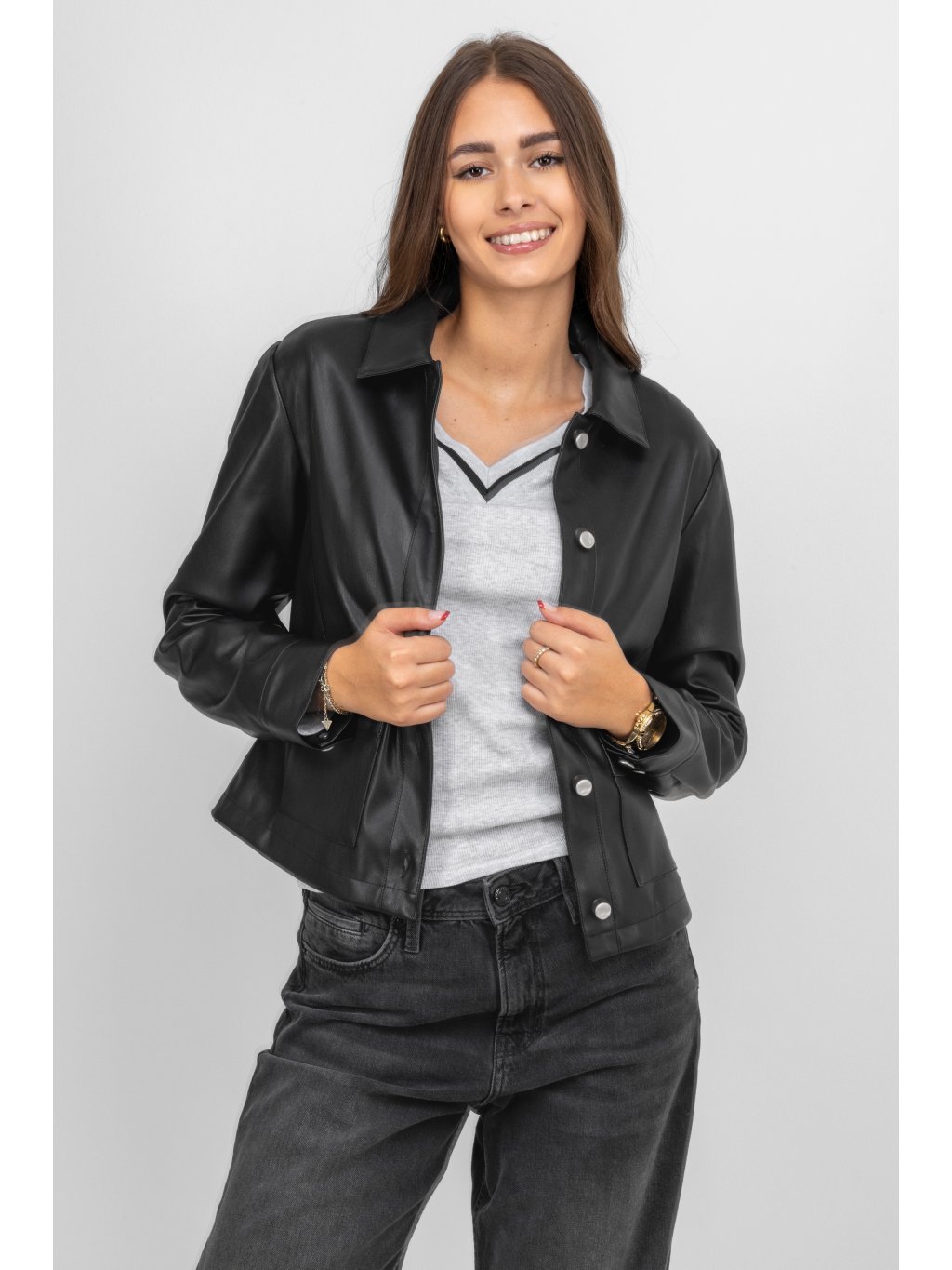 Rino&Pelle koženkové košilové sako Annicka černé