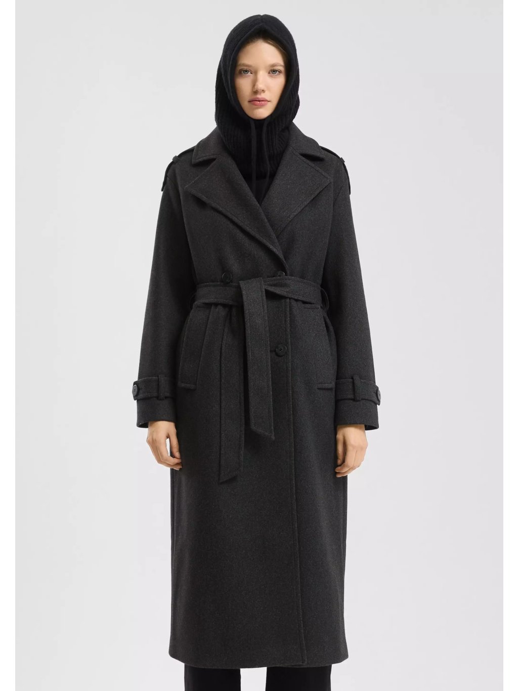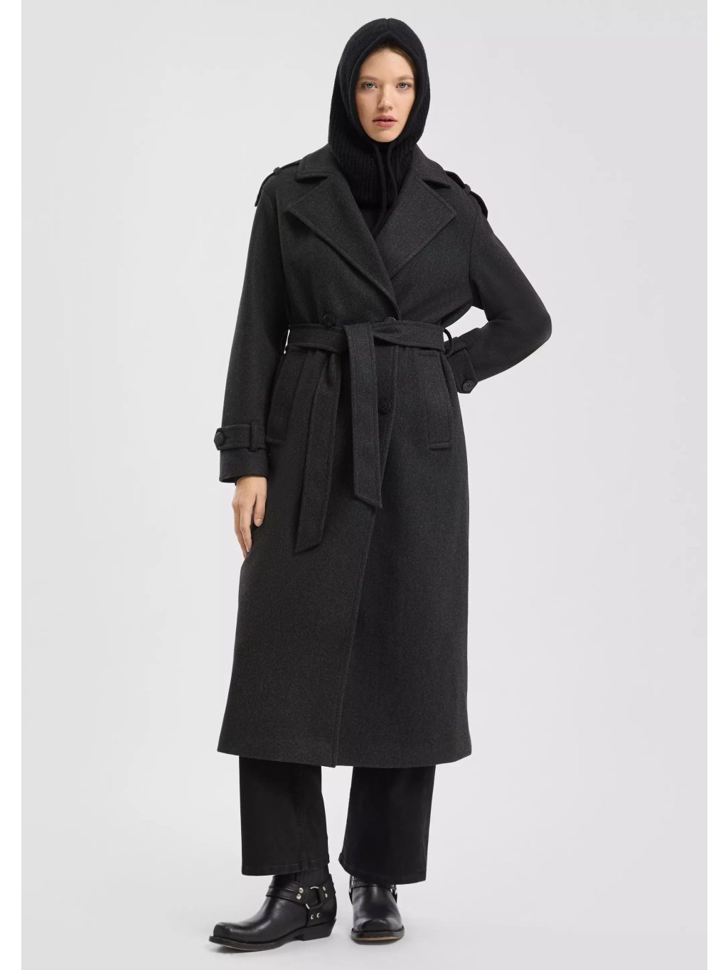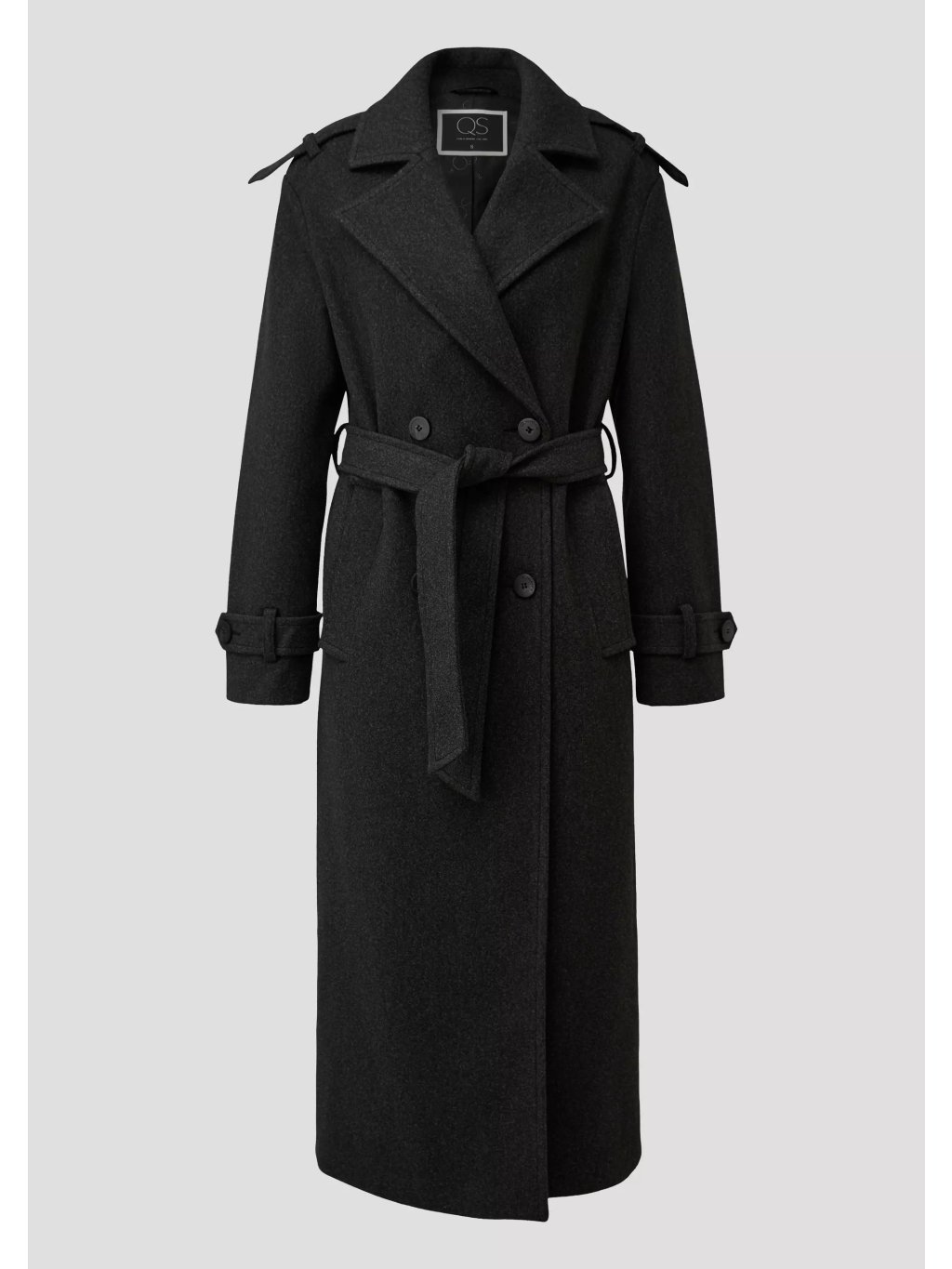 s.Oliver flaušový maxi kabát na pásek antracitový