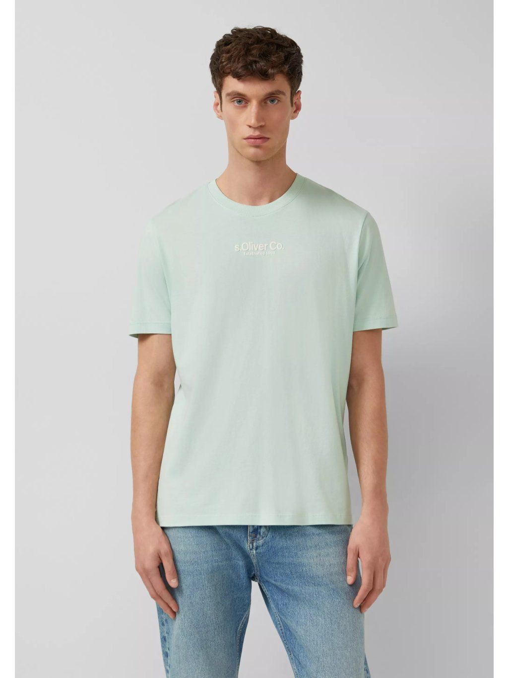 s.Oliver pánské basic triko s pěnovým potiskem pastelově zelené