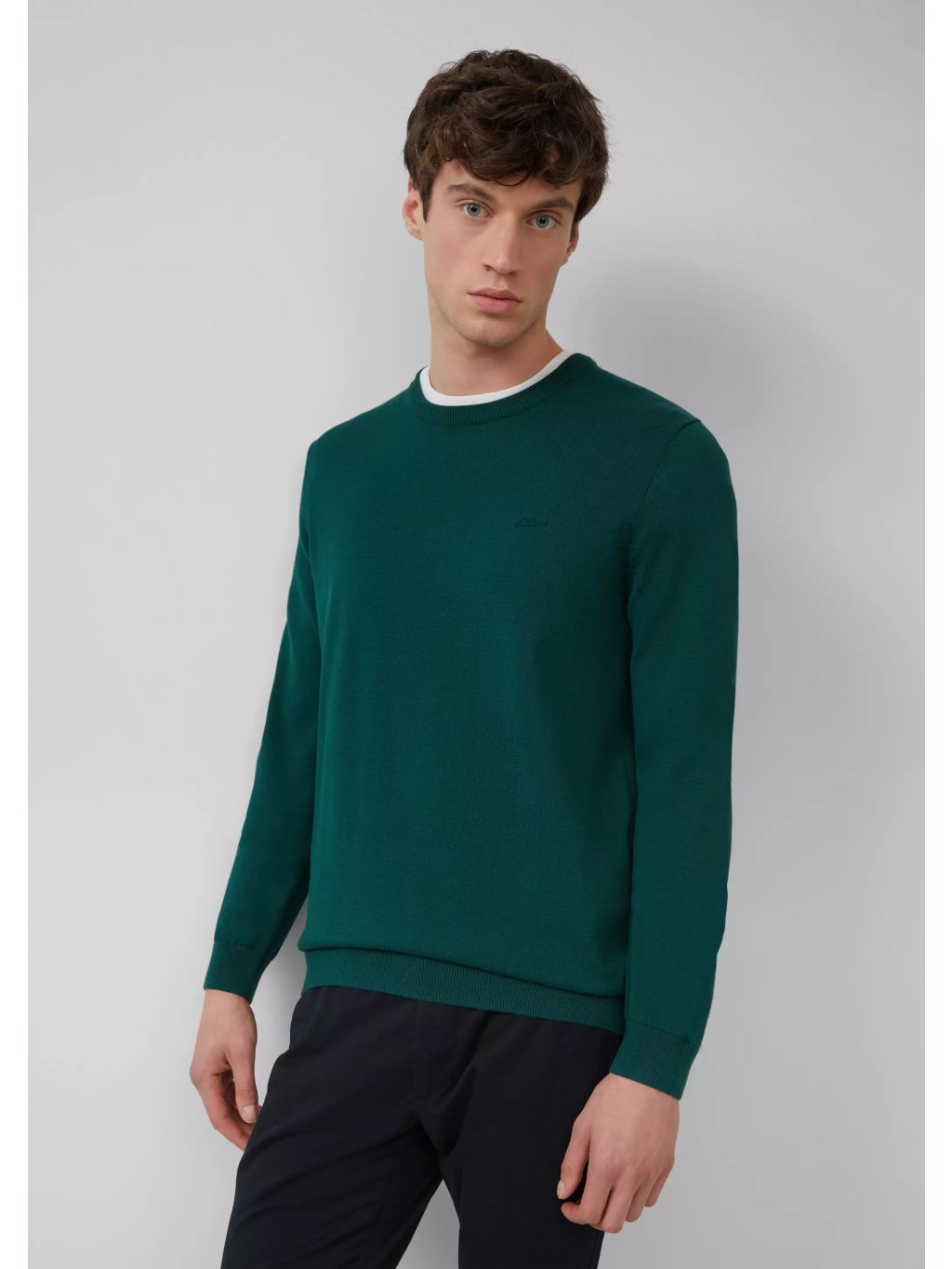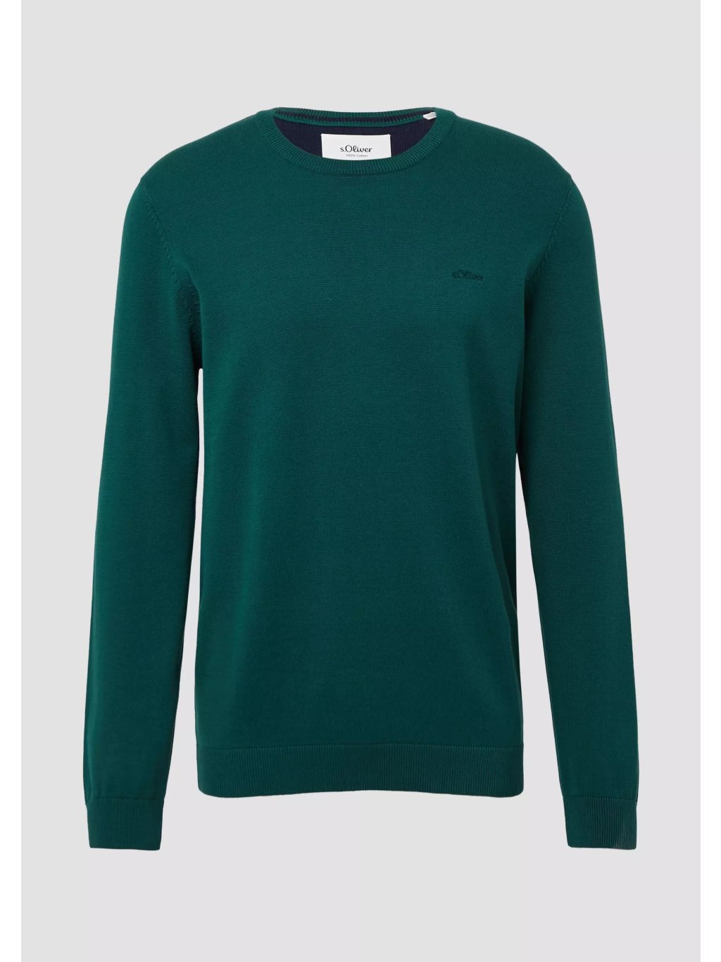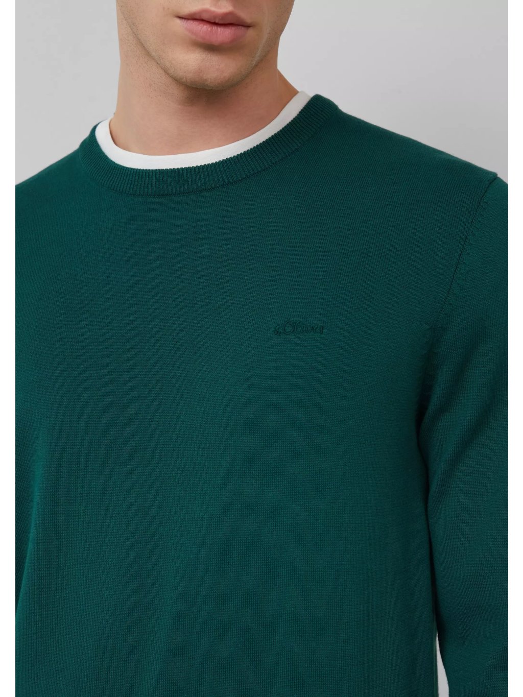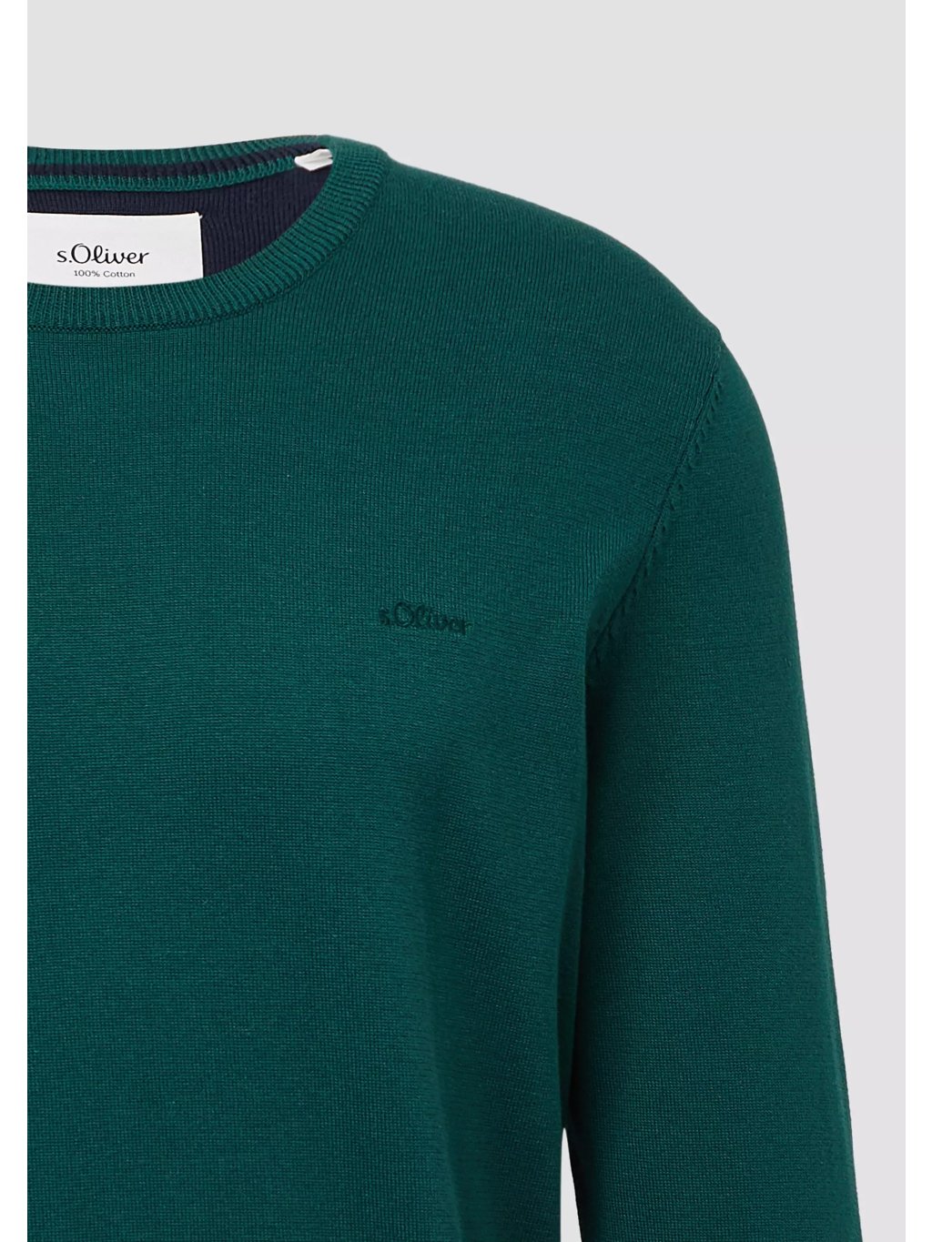 s.Oliver pánský úpletový svetr kulatý výstřih tmavě zelený
