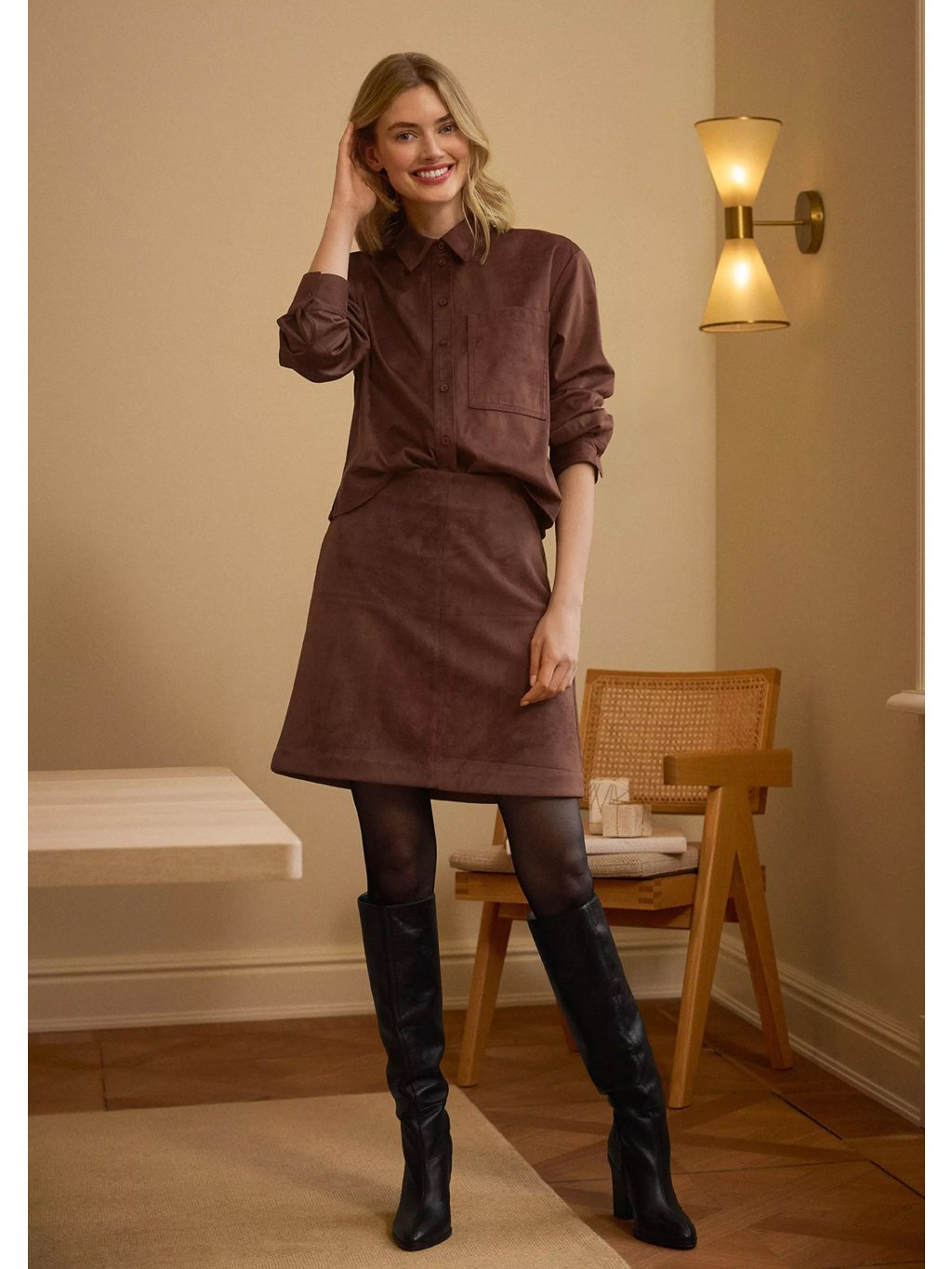 s.Oliver propínací velurová košile hnědá