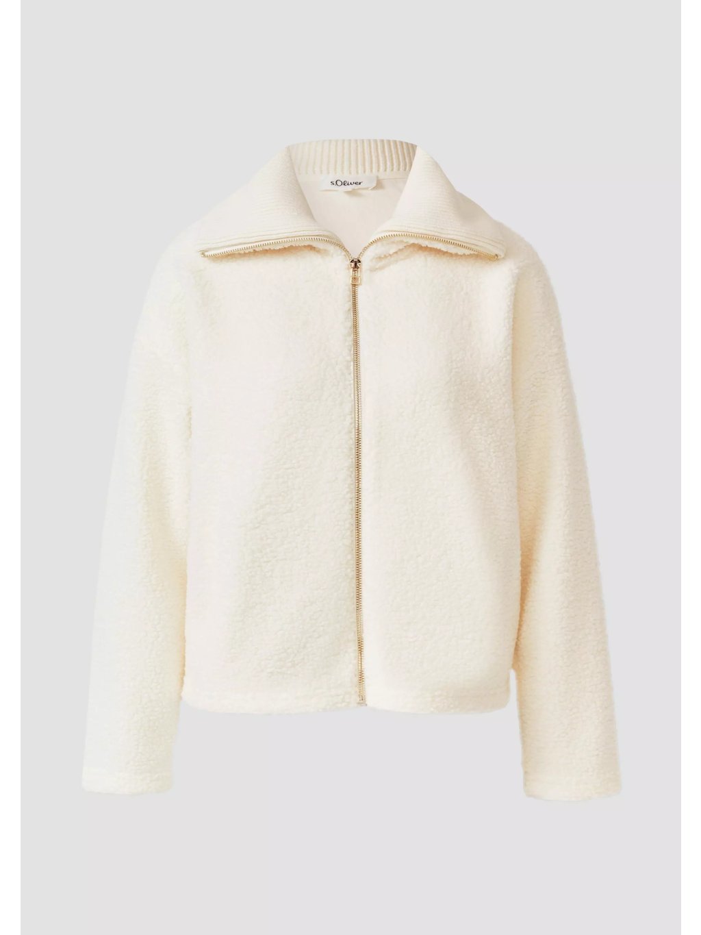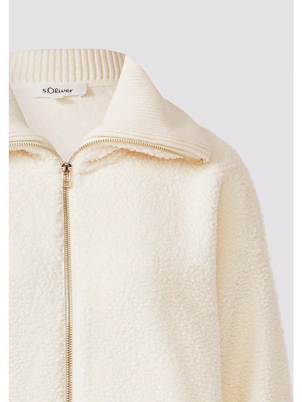 s.Oliver rozepínací mikina s rolákovým límcem krémová