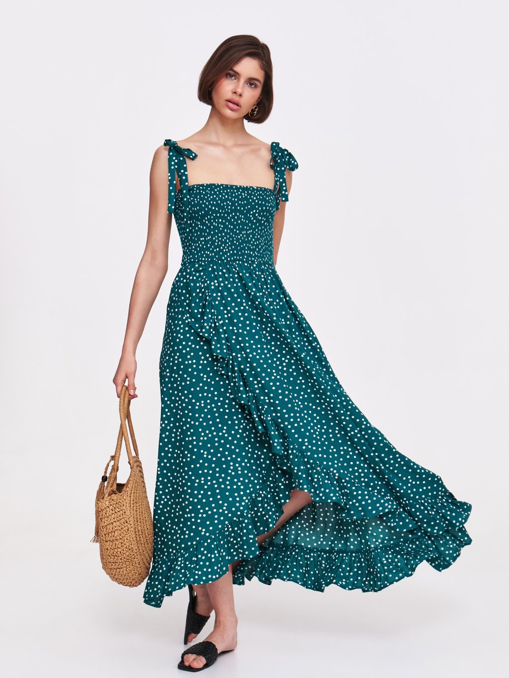 Top Secret dámské midi šaty s puntíky zeleno/bílé