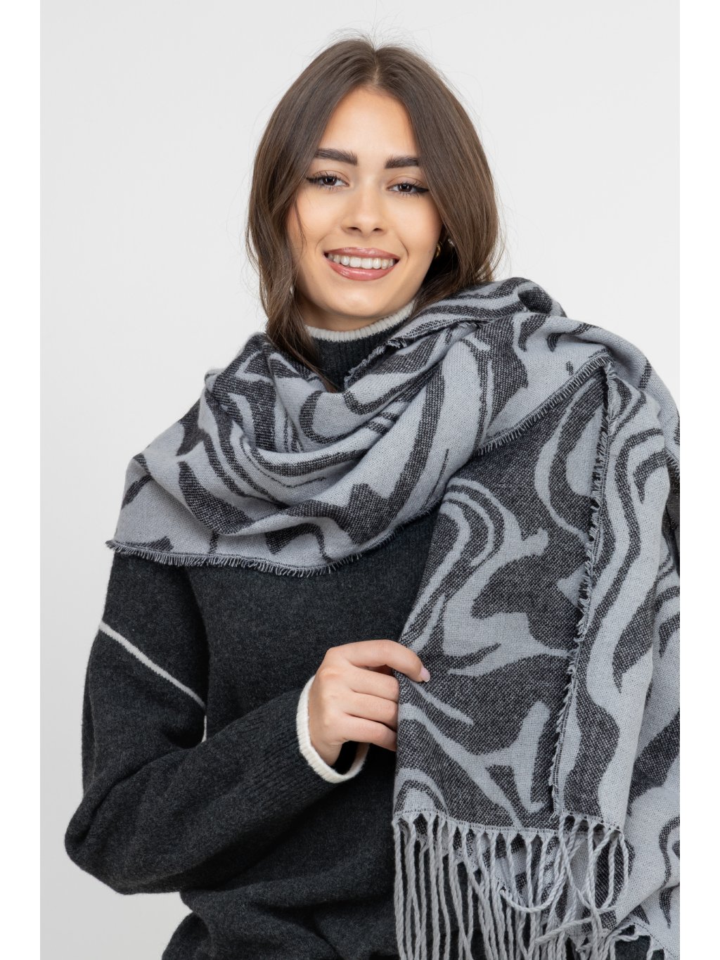 - dámská oboustranná šála s třásněmi v šedé barvě