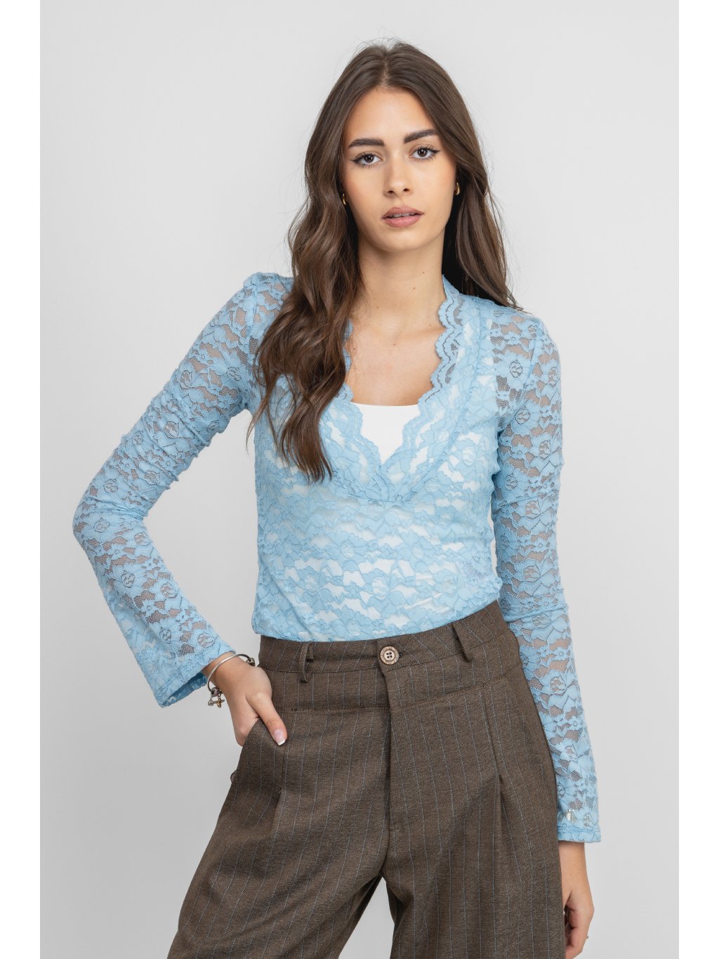 - dámské krajkové triko světle modré barvy