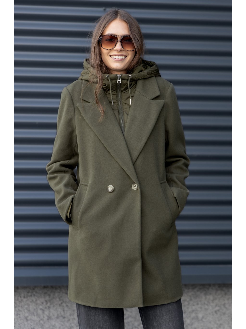 Vero Moda flaušový kabát s kapucí Grace olivový