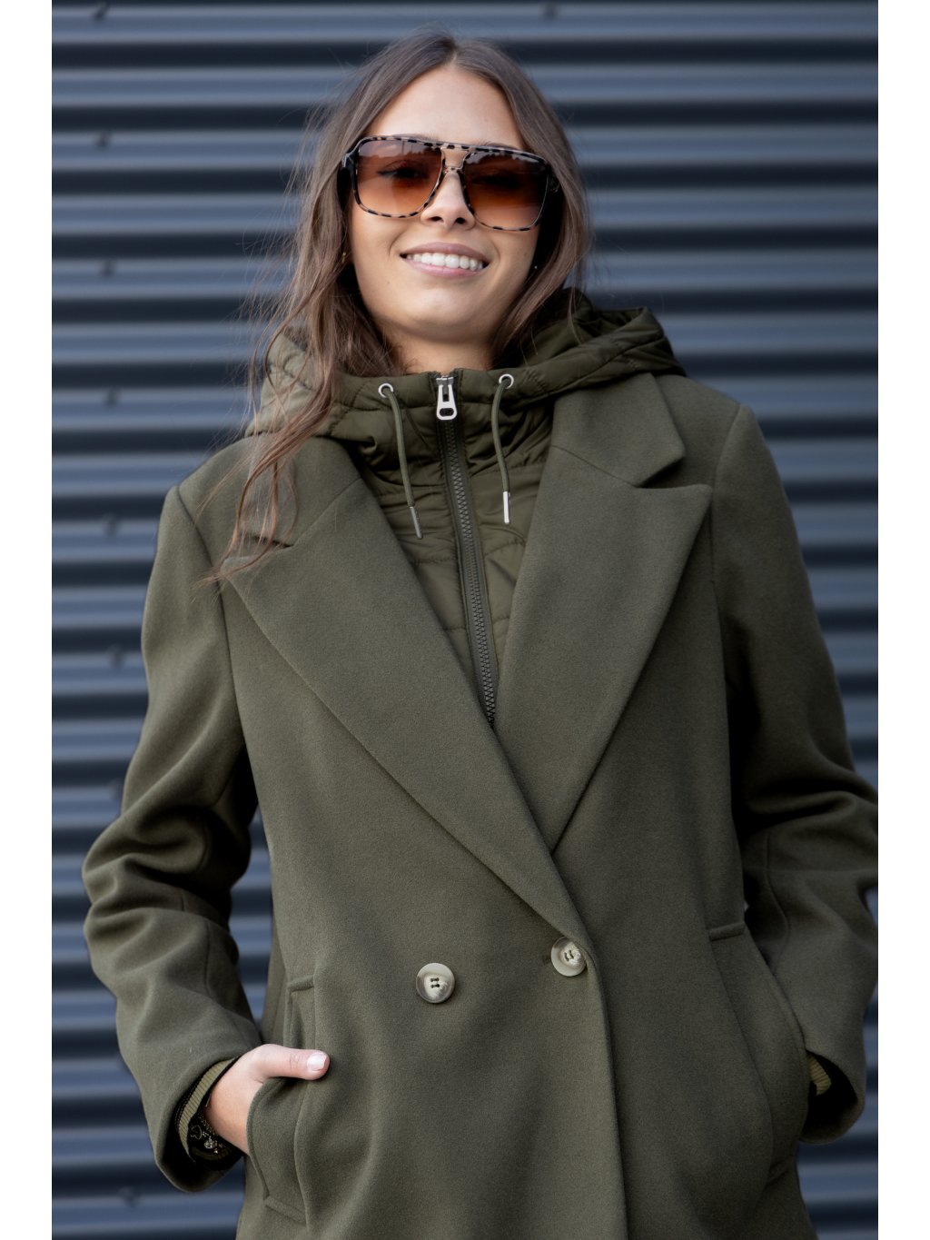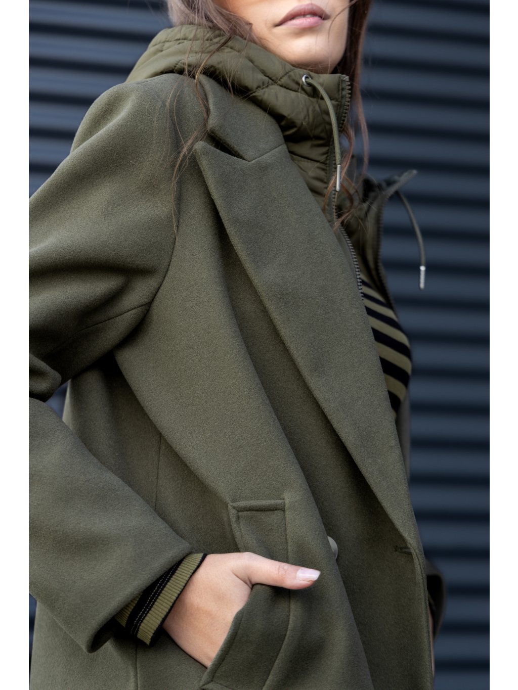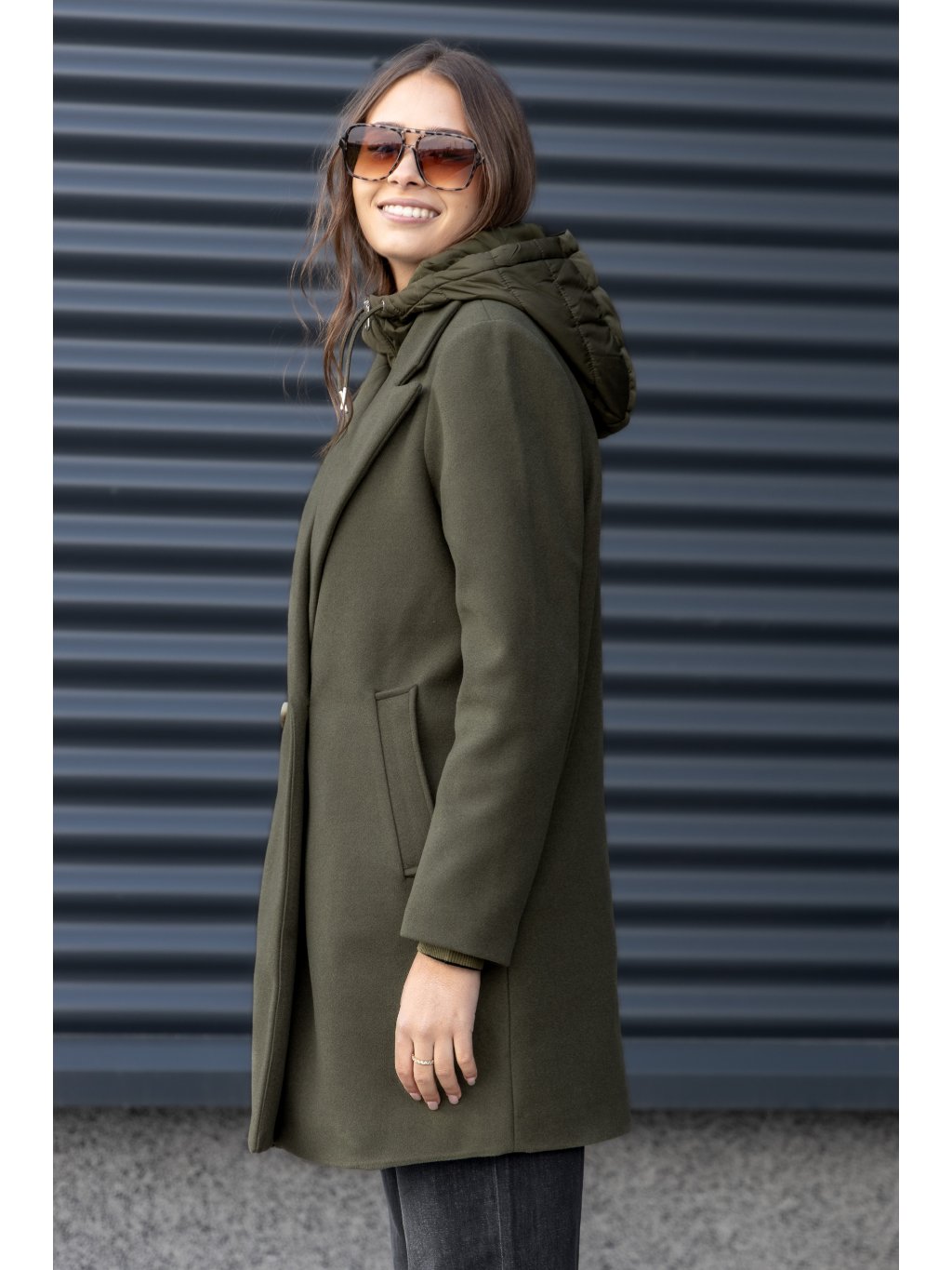 - dámský flaušový kabát v tmavozelené barvě