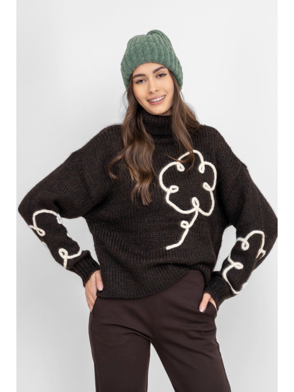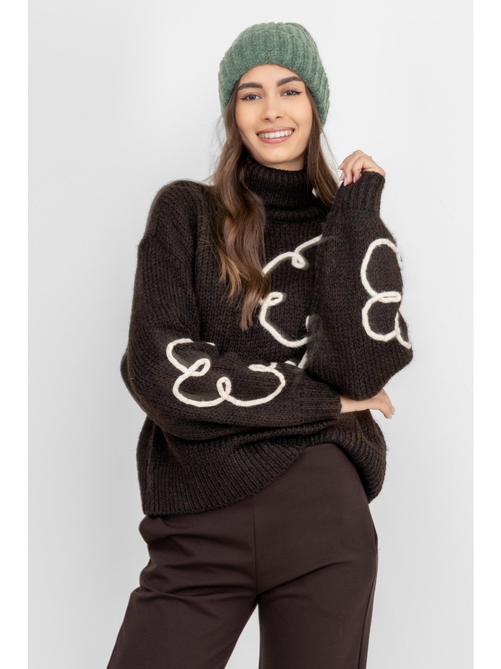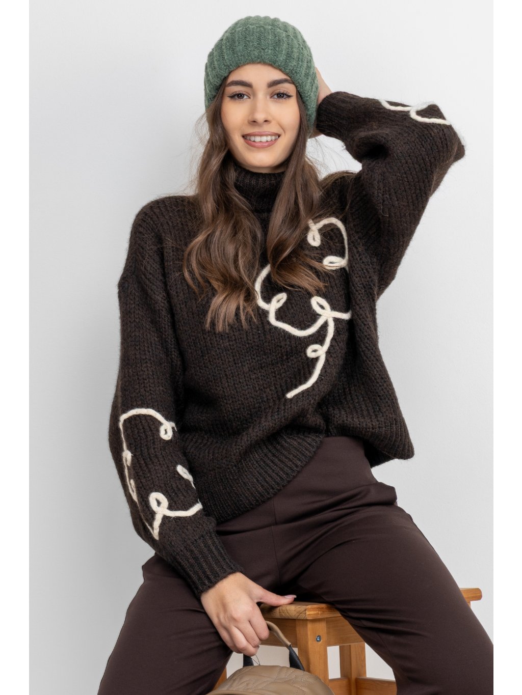 Vero Moda pletený rolák Fatima tmavě hnědý