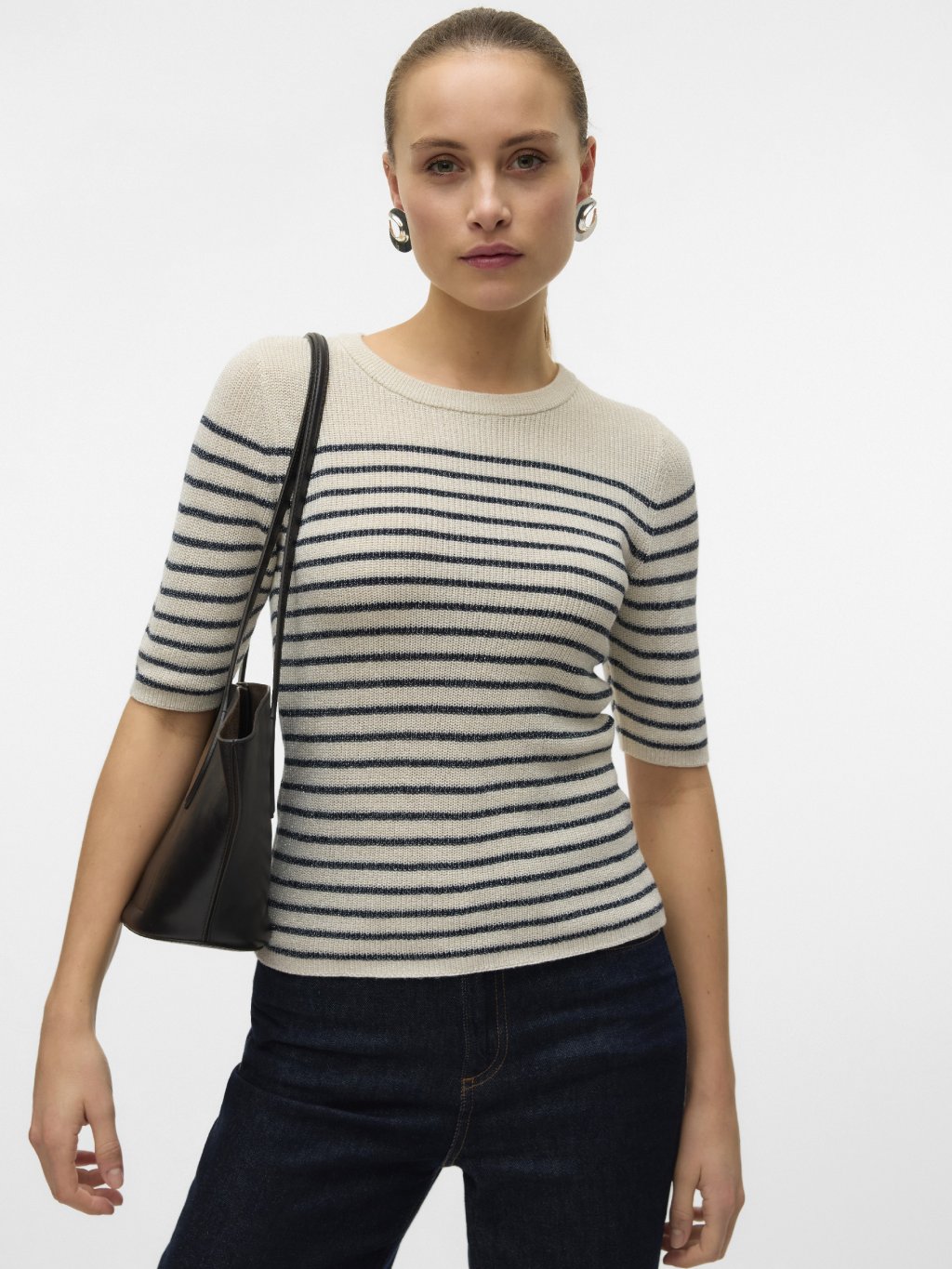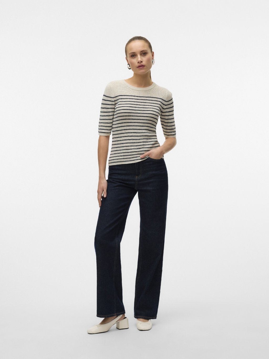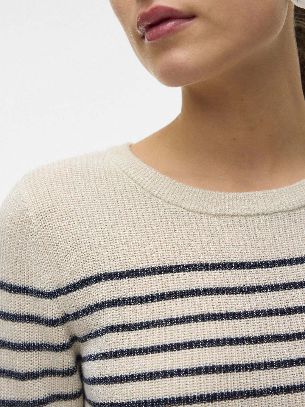 Vero Moda úpletový svetr s proužky Newlexsun krémový
