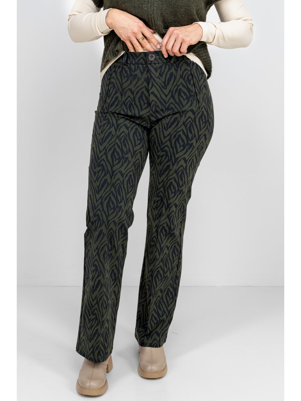 - luxusní dámské kalhoty v kombinaci tmavě modré a khaki barvy